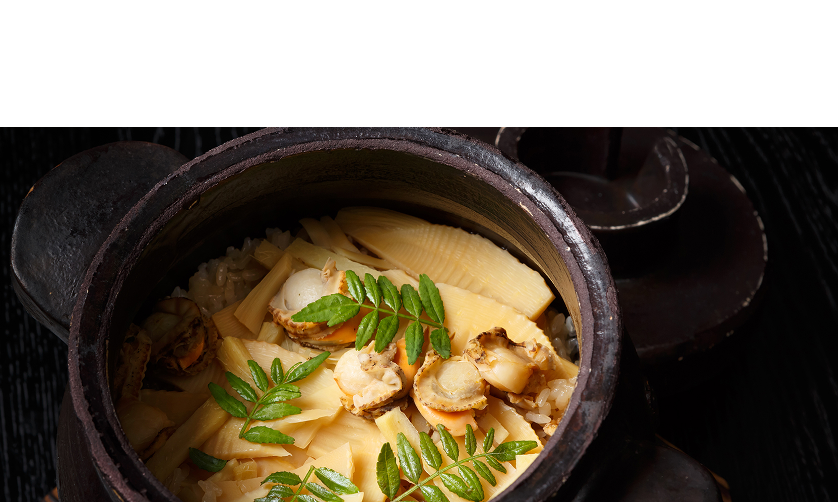 信州の北部から取り寄せる米はしっかりとした味わいが有り、季節の食材との相性は抜群です。ご注文いただいてから一釜ごと丁寧に炊き上げた炊き込みご飯で長野の四季をお楽しみ下さい。